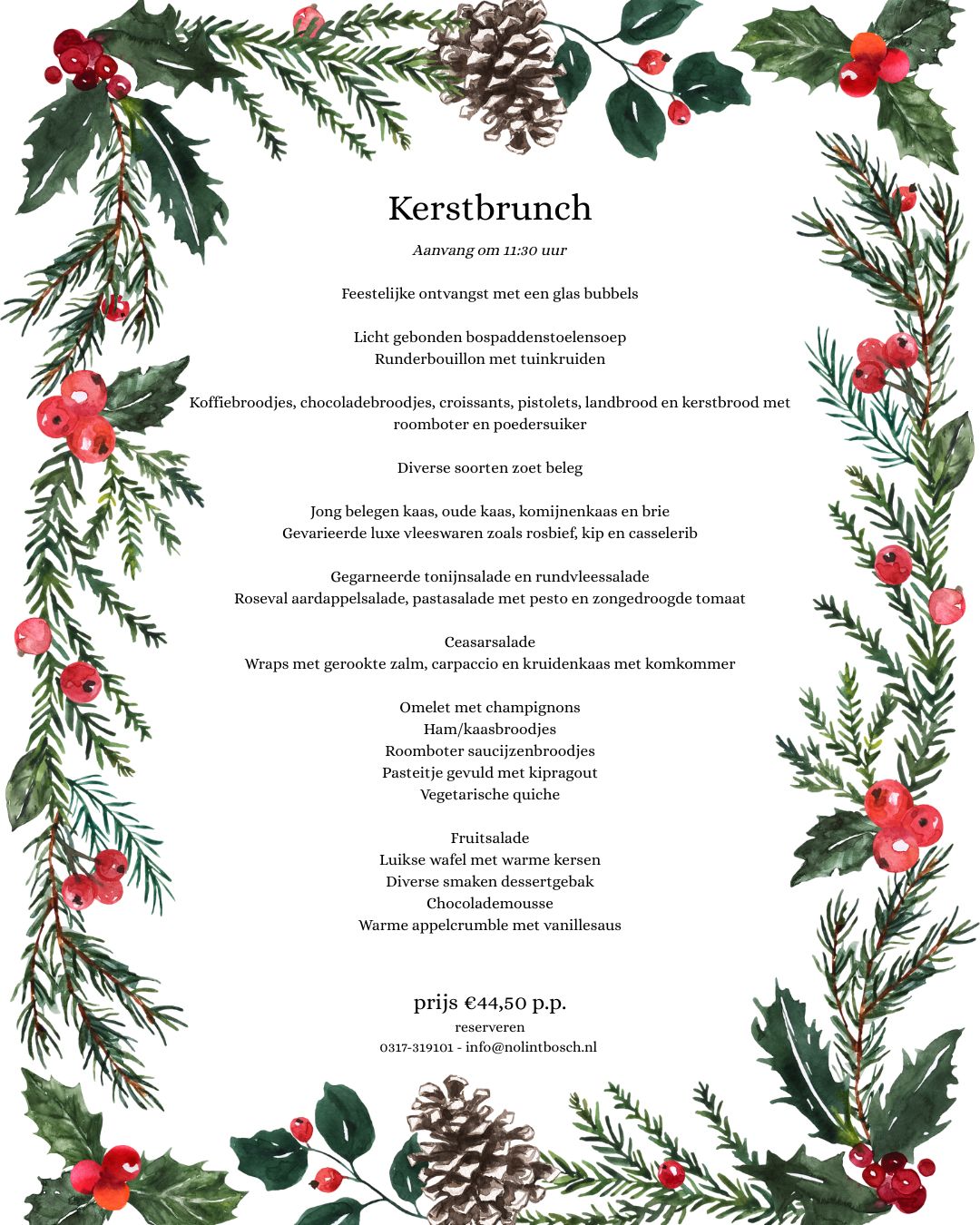 Uw tafel reserveren voor de kerstbrunch op eerste of tweede kerstdag kan